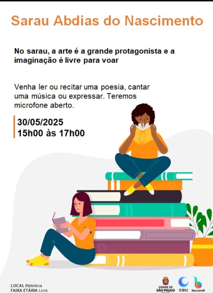 O Sarau Abdias do Nascimento é um evento cultural que acontece na Biblioteca do CEU Arthur Alvim-Abdias do Nascimento, em que pessoas se reúnem para compartilhar e apreciar expressões artísticas, como poesia, música, dança, teatro e outras formas de arte. É um espaço onde as pessoas se expressam livremente, interagem e criam um ambiente descontraído e acolhedor.