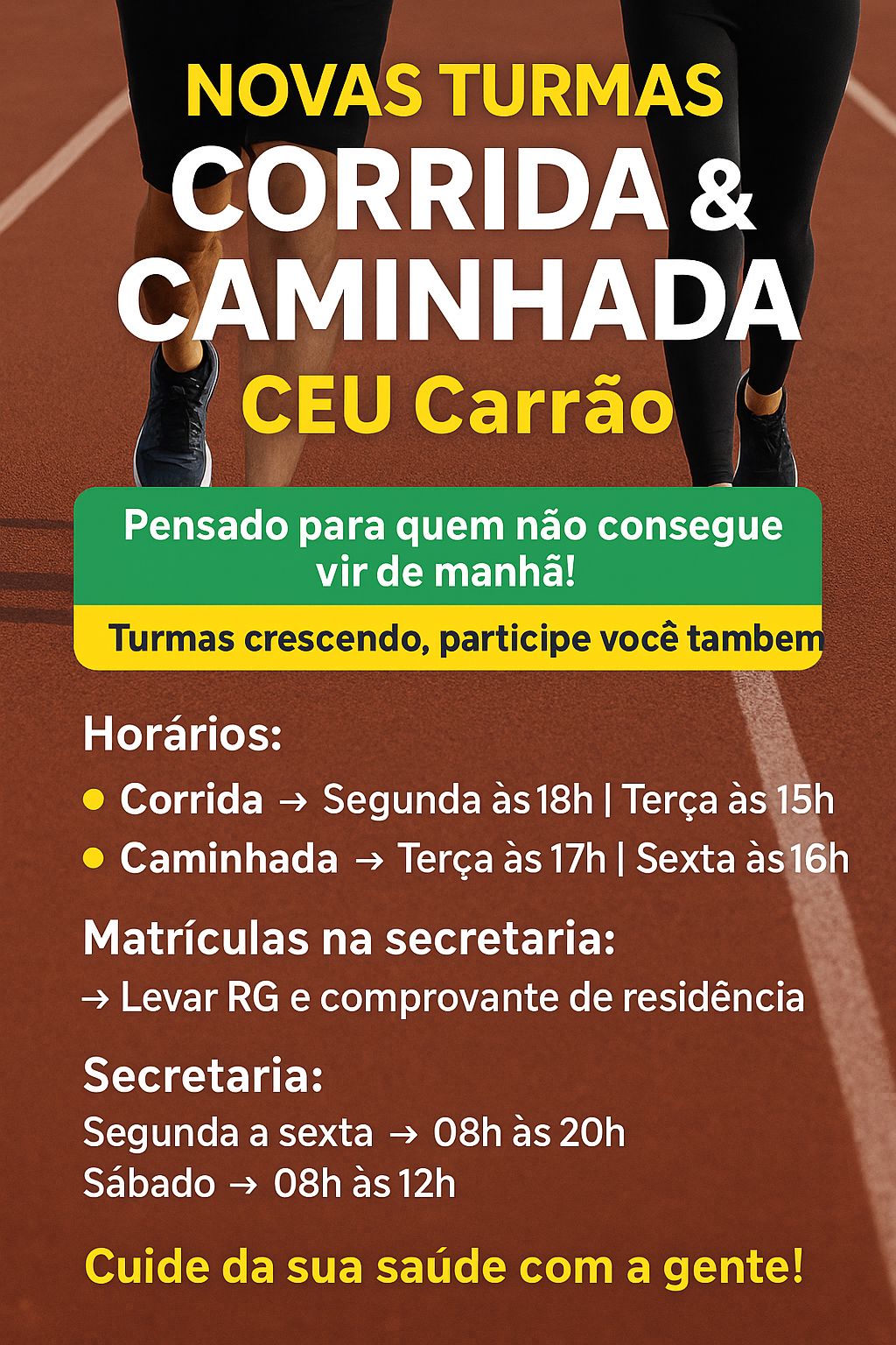 📢 Convite Especial – Novas Turmas de Corrida e Caminhada no CEU Carrão 🏃♂️🚶♀️