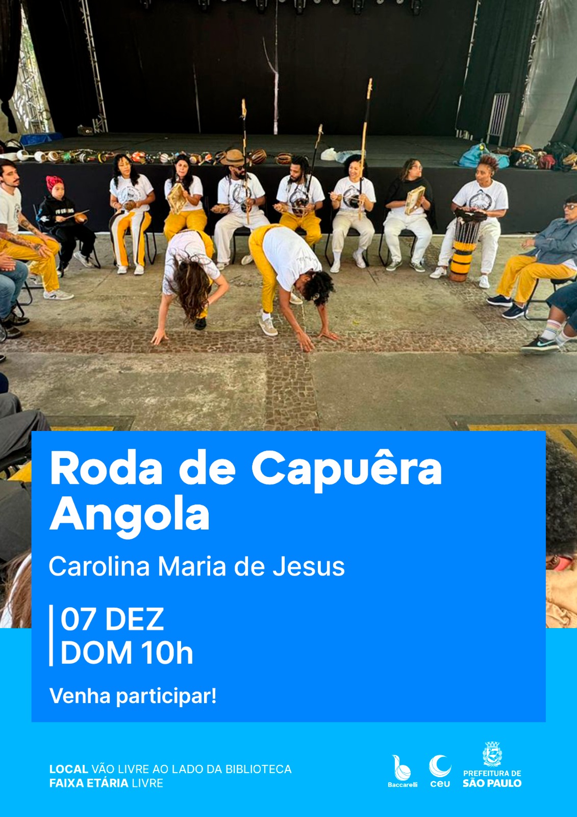 O CEU Carrão convida a comunidade para participar da Roda de Capuêra Angola – Carolina Maria de Jesus, um encontro de cultura, movimento e ancestralidade.