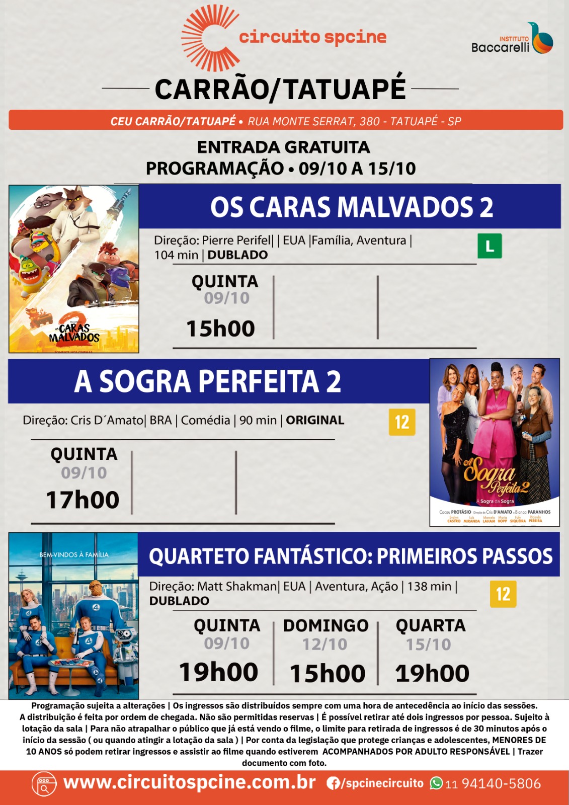 SP cine Os ingressos são distribuídos sempre com uma hora de antecedência ao inicio das sessões. A distribuição é feita por ordem de chegada, não são permitidas reservas. É possível retirar até dois ingressos por pessoa. Para não atrapalhar o publico que já esta vendo o filme, o limite para retirada de ingresso é de 30 minutos após o início da sessão. Por conta da legislação que protege crianças e adolescentes, MENORES DE 10 ANOS só podem retirar ingressos e assistir ao filme ACOMPANHADOS POR ADULTO RESPONSÁVEL. Trazer documento com foto. |