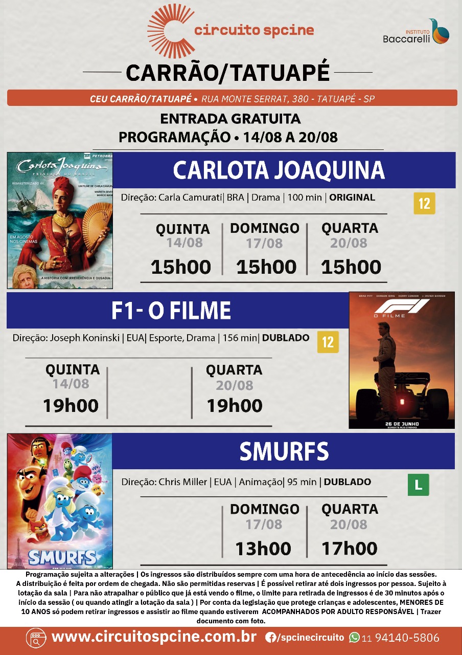 SPCine Os ingressos são distribuídos com uma hora de antecedência ao início das sessões por ordem de chegada do público, não sendo permitidas reservas de ingressos. É possível retirar até dois ingressos por pessoa. Visando o bom andamento da sessão não é permitida a entrada após 30 minutos do início da sessão. Por conta da legislação vigente , menores de 10 só poderão retirar os ingressos e assistir a sessão acompanhados por uma adulto com foto. Apresentar um documento pessoal com foto. |
