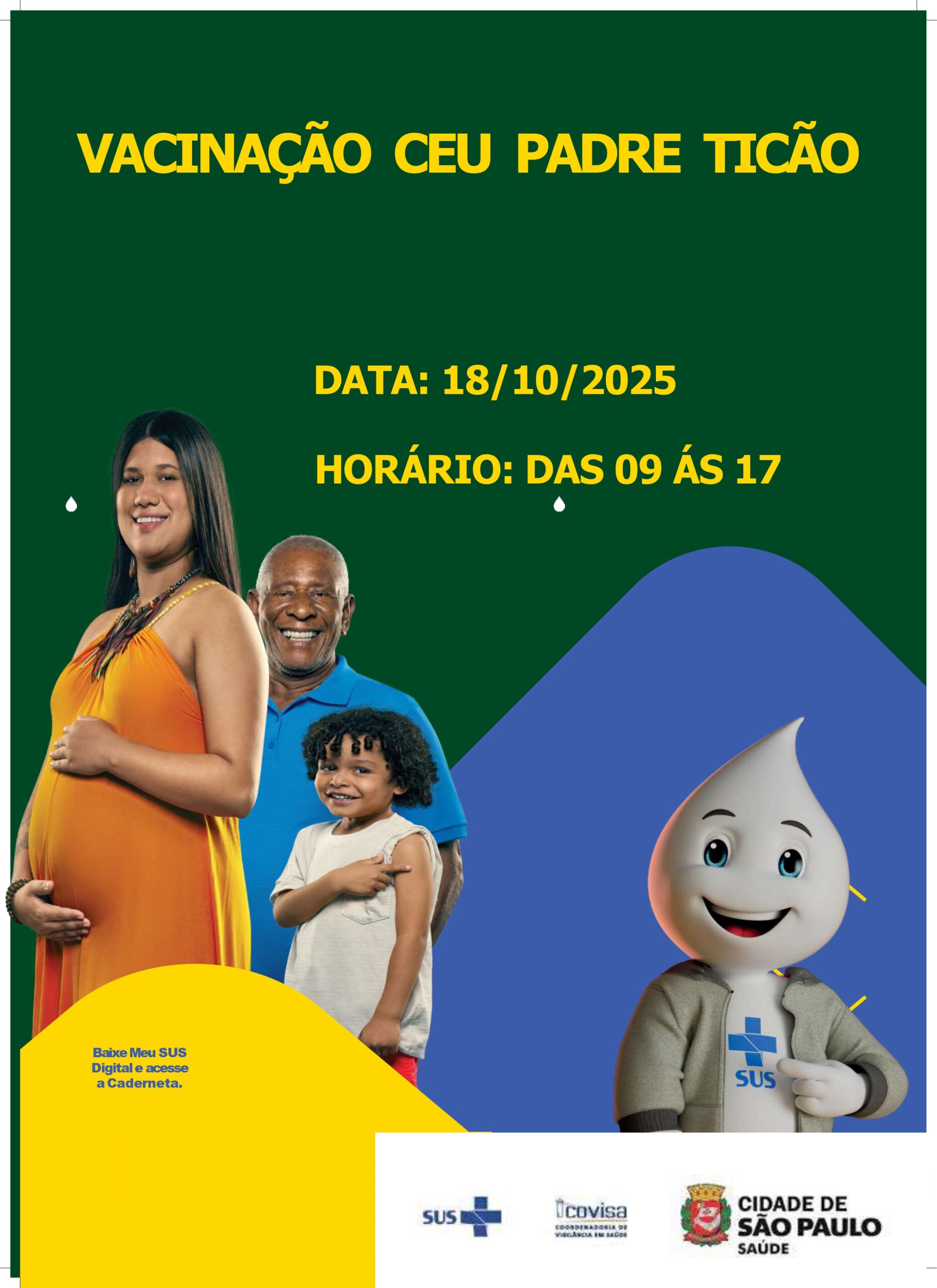 No dia 18/10, o CEU Padre Ticão será ponto de Intensificação da Vacinação, com atendimento aberto a toda a comunidade.