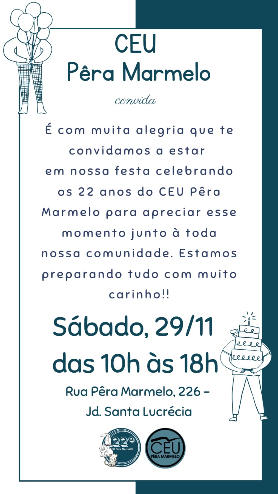 VENHAM COMEMORAR CONOSCO O ANIVERSÁRIO DE 22 ANOS DO CEU PÊRA MARMELO.