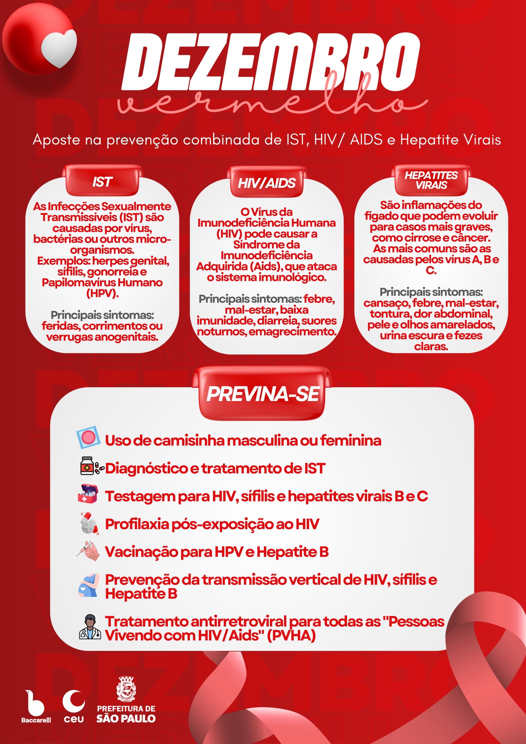 A unidade realizou uma exposição temática em referência ao Dezembro Vermelho, mês dedicado à prevenção das Infecções Sexualmente Transmissíveis (IST), HIV/Aids e Hepatites Virais. O espaço conta com materiais informativos, elementos visuais e orientações sobre formas de transmissão, sintomas e medidas de prevenção, como o uso de preservativos, testagem regular, vacinação e tratamento adequado.