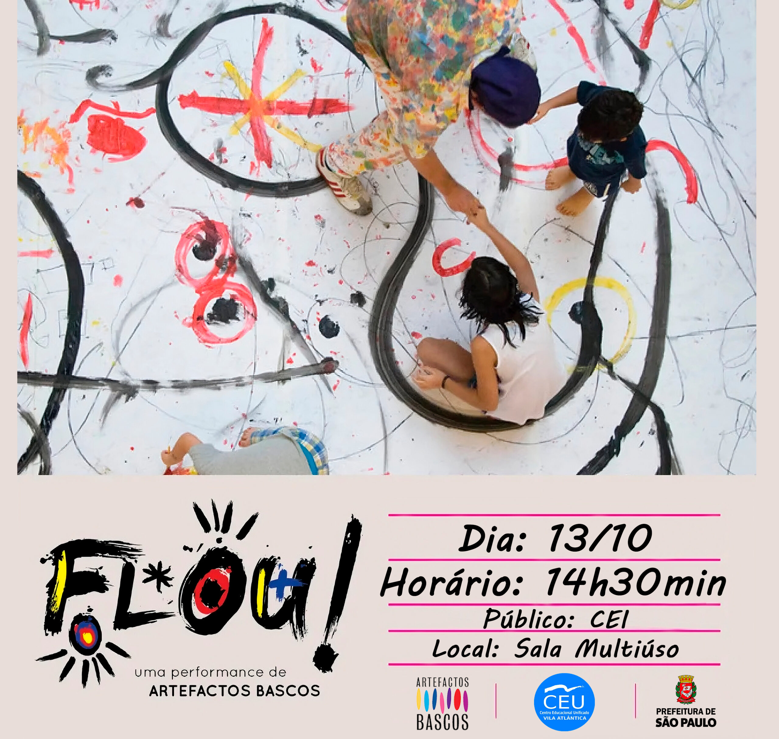 Sinopse: FLOU! é uma performance para crianças que convida o público a participar numa experiência artística coletiva. Através de um dispositivo de jogo, os participantes exploram com tinta, um universo criativo cheio de linhas, formas e composições que se configuram e reconfiguram a cada momento. FLOU! é um acontecimento estético que celebra a criatividade compartilhada e afirma que todos somos artistas.