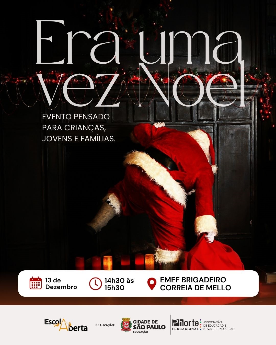 Viva a magia do Natal em um espetáculo encantador! “Era uma vez… Noel!” convida toda a comunidade para uma aventura cheia de fantasia, música e emoção. Uma história divertida e interativa que promete encantar crianças, jovens e adultos.