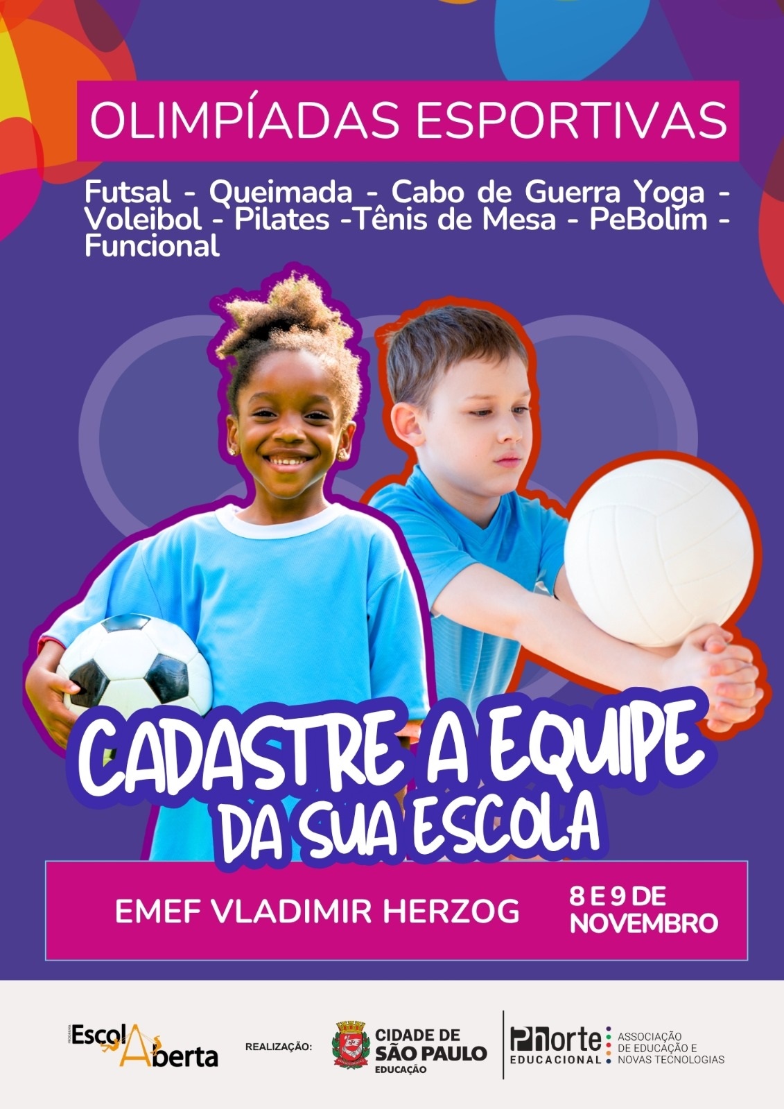 As Olimpíadas Internas do Programa Escola Aberta reúnem crianças, adolescentes, famílias e toda a comunidade escolar em um grande evento esportivo e recreativo.