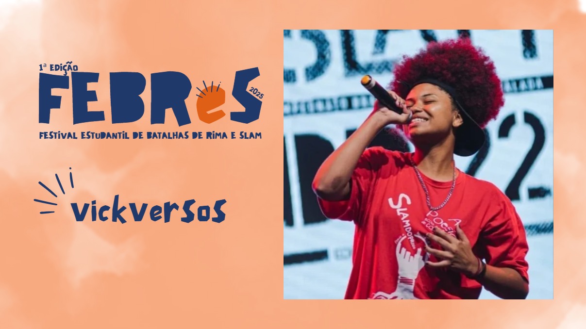 VickVi, artista independente de Guarulhos, bolsista do Núcleo de Articulação do Theatro Municipal, campeã do interestadual feminino de Freestyle Brasileiro (2024), Bi campeã do torneio dos Slams (2022 e 2024) e Poeta formadora do Slam interescolar, coleciona folhinhas nas batalhas de rima de diversos lugares do país. Rimadora do vagão, coleta moedas e sorrisos declamando sua vivência no Slam e, simultaneamente, se permite viver outras realidades no teatro.